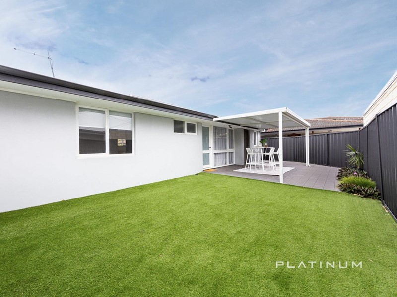 Outside, the backyard continues the home’s easy-care appeal. With a covered patio for year-round enjoyment, artificial lawn, and a handy garden shed, it’s a space designed for relaxing rather than maintaining.